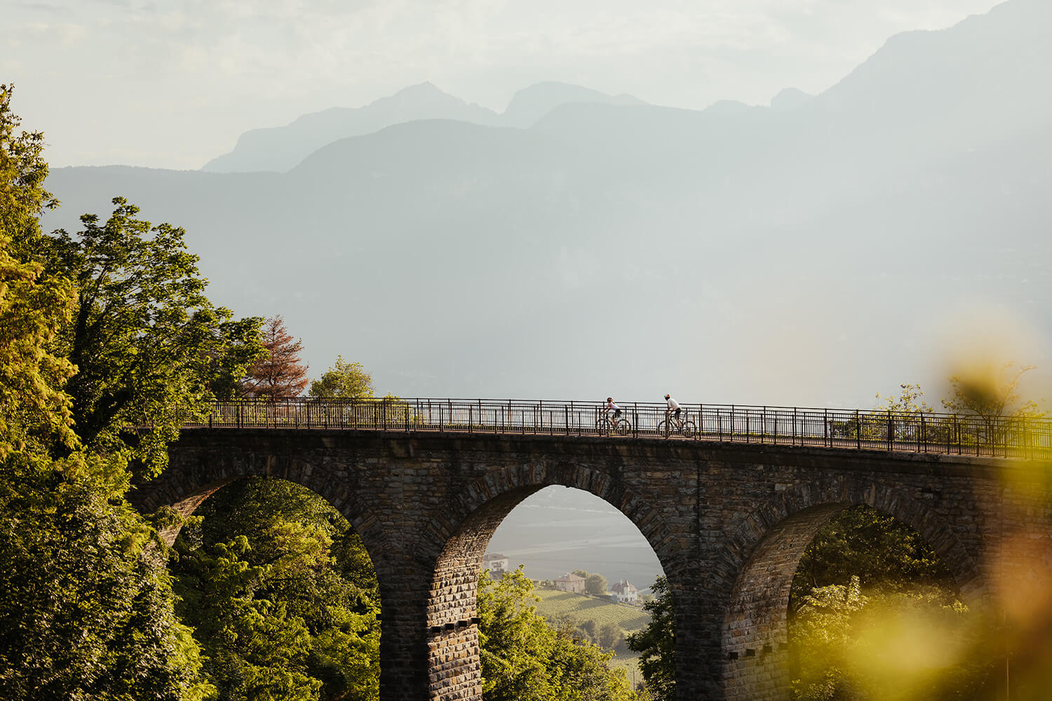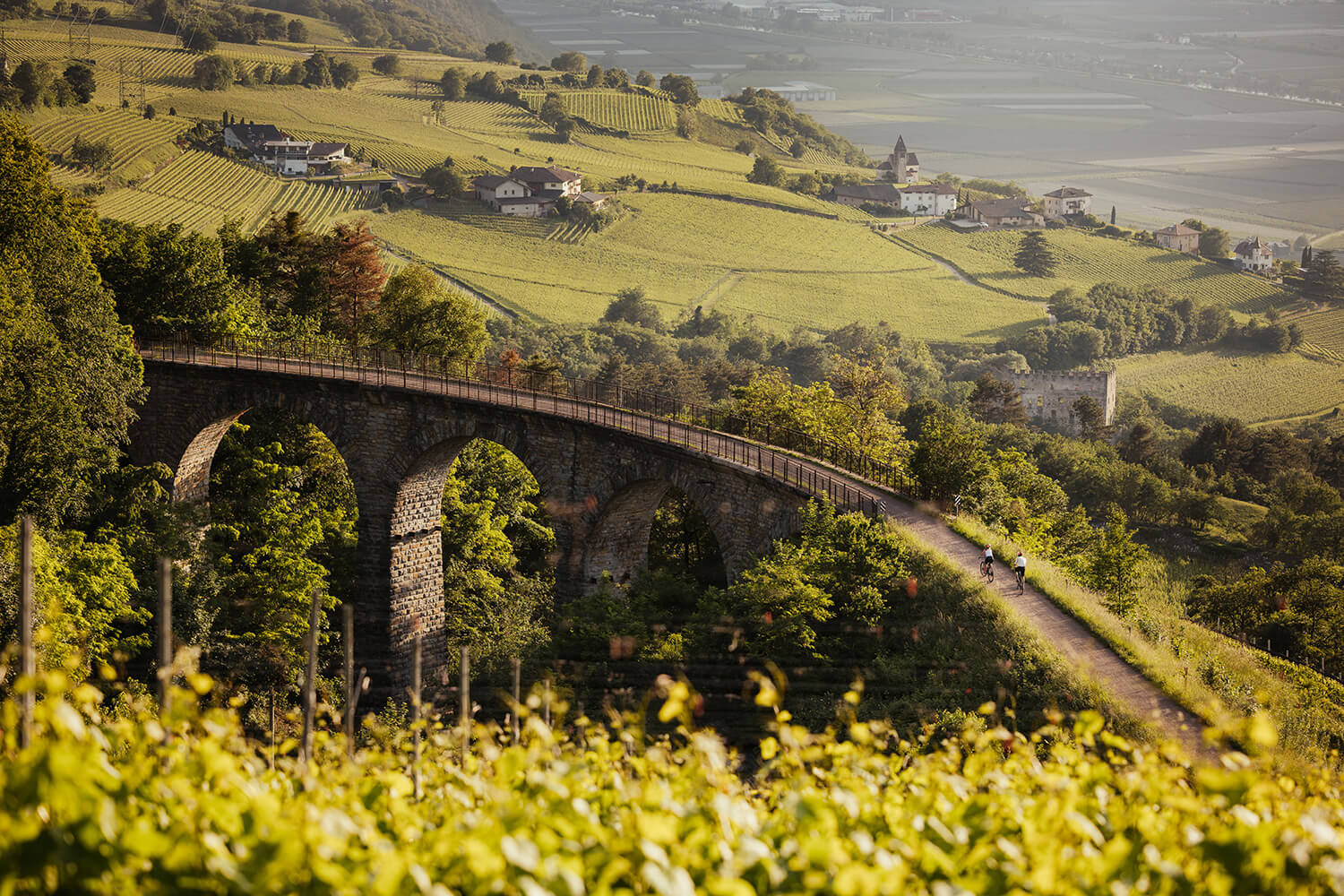 Südtirols Süden lässt sich auf dem Rad in mehreren Geschwindigkeiten entdecken: auf einer ehemaligen Kriegsbahntrasse durch Tunnel und über Viadukte, auf einer zweitausend Jahre alten Römerstraße bis an den Gardasee oder ganz gemächlich durch Weinberge, von Dorf zu Dorf.