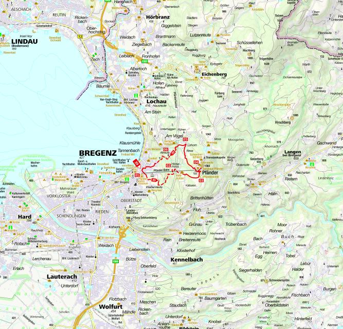 Start: Bregenz, Bushaltestelle bei der Pfänderbahn (Parkplatz), 410 m GPS: 47.50322,1749.74077