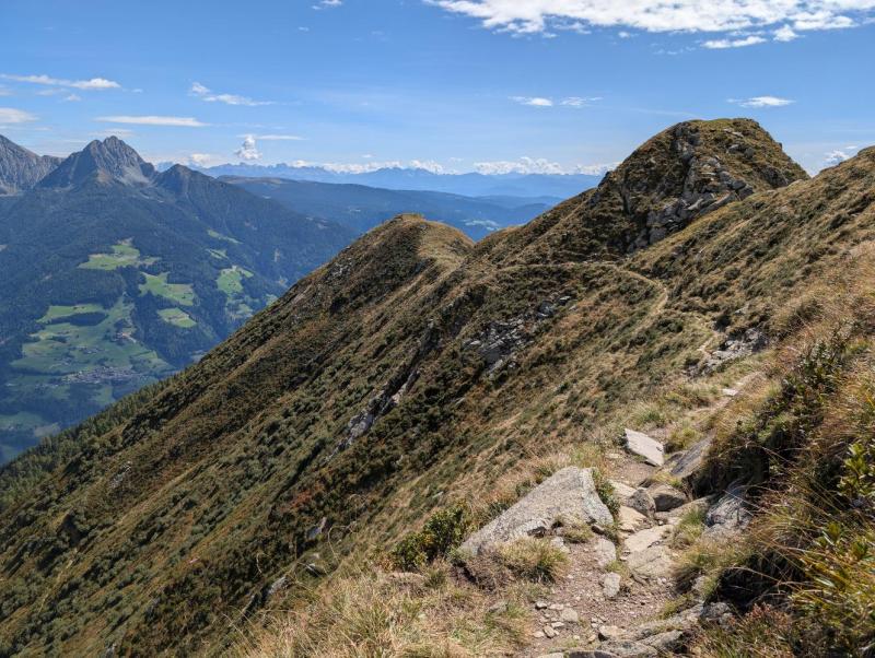 Einfache, gut markierte Bergwege, zum größten Teil schattenlos. Der Kammweg (Lustige-Kameraden-Steig) zum Pfitschkopf ist sehr schmal und luftig und erfordert unbedingte Trittsicherheit und Schwindelfreiheit.